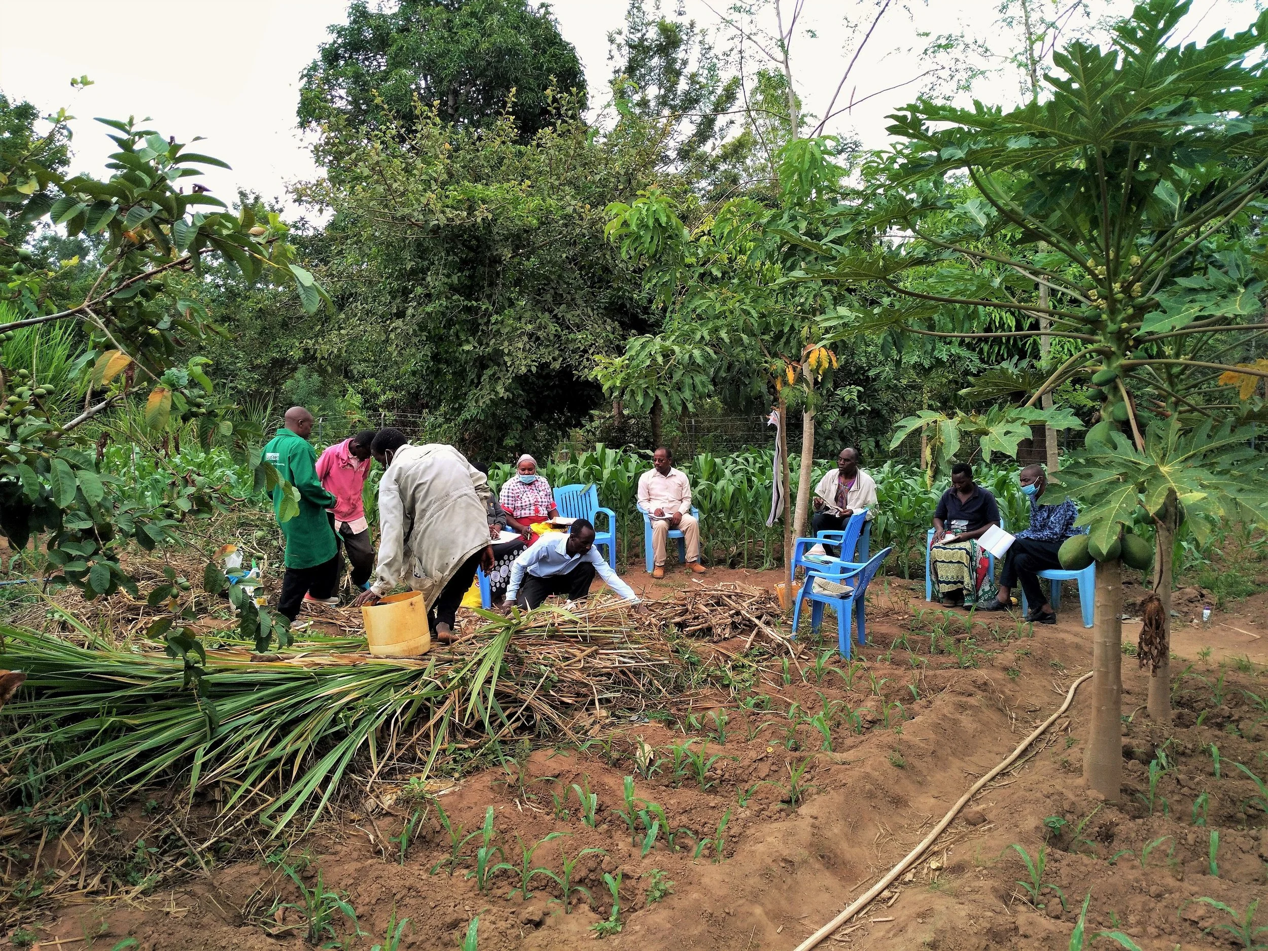 Theorie (l.) und Praxis-Block (r.) des Trainings zur Bodenverbesserung auf der FoM Farm.